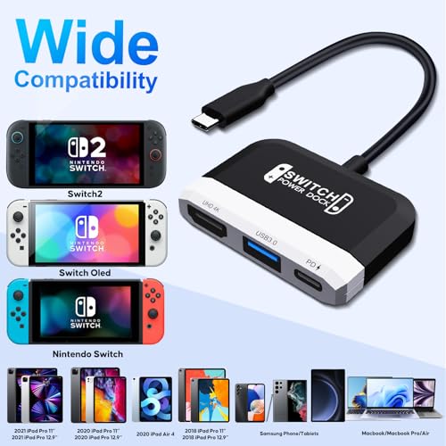 • ?4K@60Hz HDMI-Ausgang? Der tragbare Switch 2 TV-Adapter unterstutzt die meisten HDTV-Gerate, Monitore, Projektoren und andere Gerate mit HDMI-Anschluss. Er unterstutzt eine Videoauflosung von bis zu 4K60Hz und sorgt so fur ein extrem flussiges Spielerlebnis