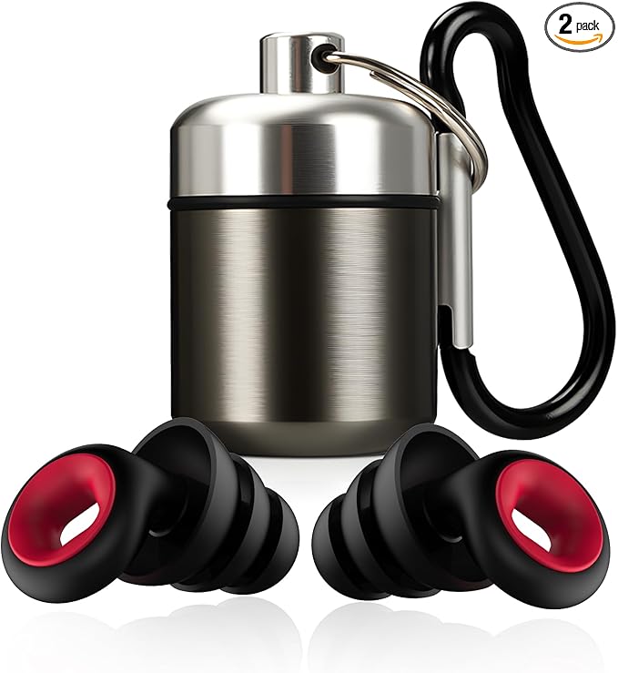 **Triple-Layer Noise Block Earplugs**: Designed for motorcycle riders, these earplugs feature a three-layer acoustic cap system, delivering up to 27 dB noise reduction against wind, engine, and road noise. A precision filter ensures harmful sounds are reduced while keeping GPS, intercom, music, and alerts like sirens audible for safety. Made from soft, skin-friendly silicone, they fit comfortably under helmets, distributing pressure evenly for long rides. Sweat-resistant and lightweight, they’re also ideal for cycling, concerts, travel, and noisy workplaces. Washable, reusable, and stored in a rugged aluminium case with a clip, they offer durable, portable protection for multiple environments, ensuring hearing safety without sacrificing awareness.