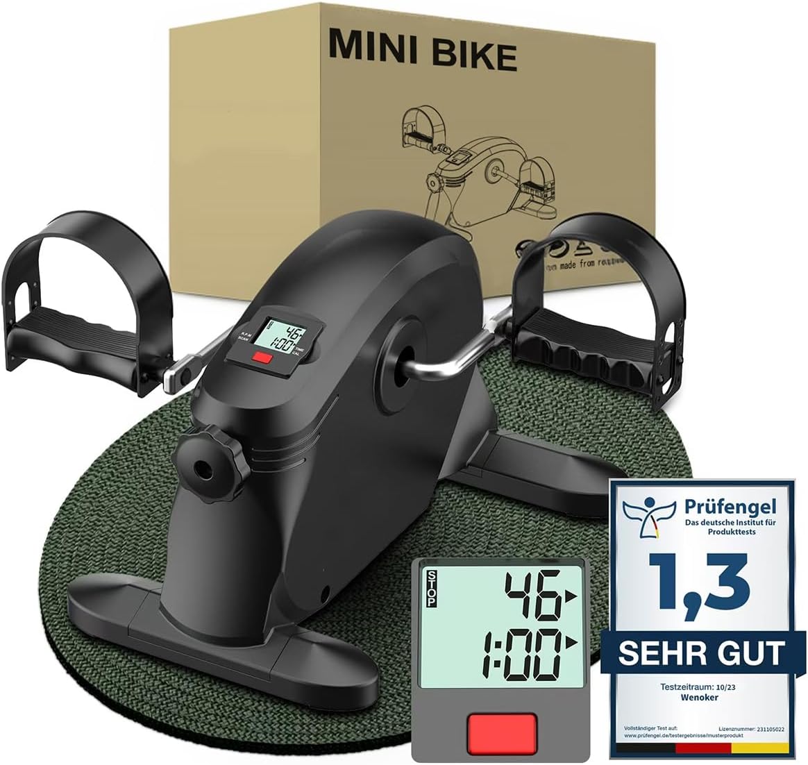 The under-desk bike ergometer features a clear LCD screen that tracks your workout data in real time. Easily monitor time, speed, distance, and calories burned to stay motivated and keep control of your exercise progress.