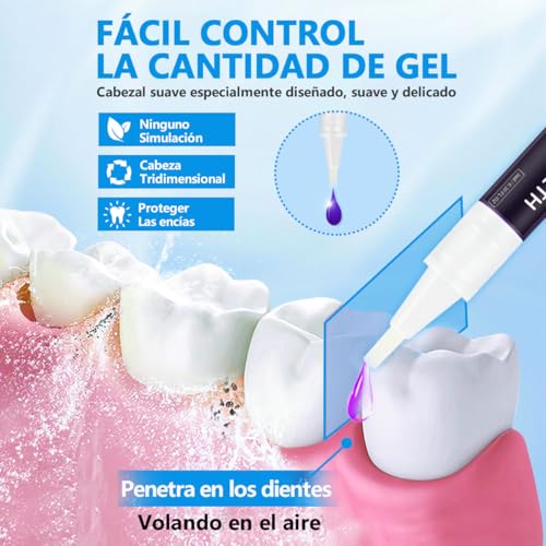 - ?Facil de Usar?El blanqueador dental muy facil de usar. Despues de enjuagarse la boca, abra la tapa del frasco, gire el soporte del boligrafo en sentido horario y use un cepillo de dientes para aplicar el gel blanqueador uniformemente sobre la superficie de cada diente. No coma ni beba durante 30 segundos o 1 minuto; luego, enjuaguese la boca con agua limpia durante 5 a 10 minutos.