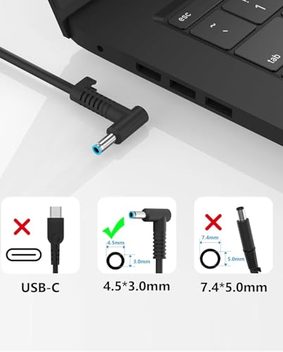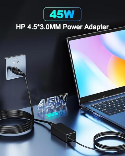 - AkoaDa Input: AC 100-240V, 50/60Hz; Output: 19.5V 2.31A 45W; Connector Size: 4.5mm * 3.0mm (Blue Tip) for HP Laptop Charger Power Supply AC Adapter Cord Replacement. Note: Compatible with 45W HP Laptop.