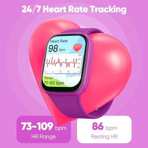 • ?Perfect Gift for Kids Age 4-12?This kids smart watch is designed with a PC+ABS frame and soft silicone wristband. 1.69″ TFT HD color touch screen, making it easy for small hands to operate. The kids watch is a perfect blend of learning, entertainment and convenience that helps kids grow and have fun simultaneously. Perfect birthday, Christmas, festival, and holiday gifts for boys and girls aged 4-12.