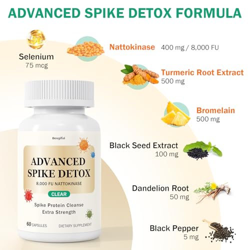 - Advanced Spike Detox Support: A synergistic blend of 8,000 FU Nattokinase, 500mg Bromelain, and 500mg Curcumin helps the body break down unwanted proteins, provides antioxidant protection, and promotes year-round immune resilience naturally