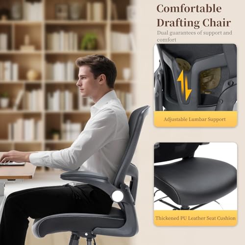 - ?Ergonomic Office Drafting Chair?: The ergonomic design adapts seamlessly to high drafting tables and standing office desks; The adjustable lumbar support is designed to provide the most suitable lumbar support and can reduce fatigue over long work sessions