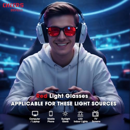 - ?Versatile Red Lens Design for Any Setting?With a bold yet minimalist style, CHEERS DEVICES red glasses offer lightweight durability and timeless appeal. Ideal for gaming, work, or casual wear, they provide both functional eye protection and modern fashion versatility.