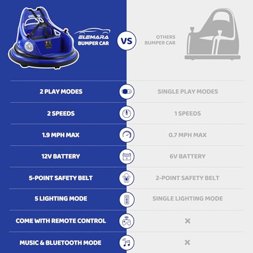 • ?Bumper Car with 1.9mph Max?ELEMARA Bumper Car for Kids allows your child to enjoy top speeds of up to 1.9mph for unparalleled fun and excitement! Enjoy the thrilling collision experience!
