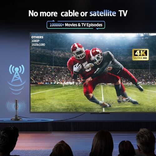 • Long Signal Range: Advanced technology enables reception of TV signals from up to 600 miles away from broadcast towers. Compatible with 1080p HD channels and supports multiple TV formats including HDTV, SDTV, and 4K