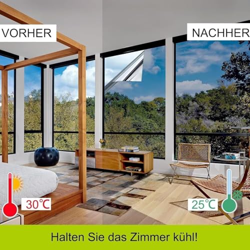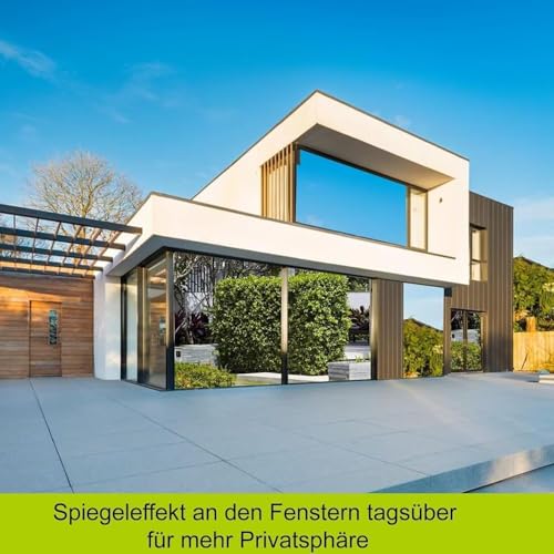 - ? SICHTSCHUTZ – Unsere Folie fur Fenster ist einseitig blickdicht & sorgt tagsuber fur Privatsphare, wahrend die Aussenseite eine edle Silberoptik hat. Dank der UV Schutzfolie Fenster fur Innen & Aussen bleibt Ihr Raum vor neugierigen Blicken geschutzt.