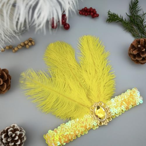Fenisonavy Feather Headpiece Sequins Headbands 2pcs Yellow 1920s Flapper Showgirl Headpieces for Women