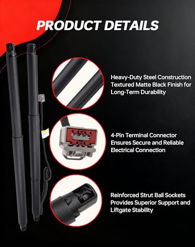 • ?Package Included? You will receive a complete pair of 2 Power Liftgate Struts (1 x Rear Left Driver Side and 1 x Rear Right Passenger Side). Flecto recommends replacing both struts simultaneously to ensure balanced lifting power and prevent uneven wear on the liftgate motor.