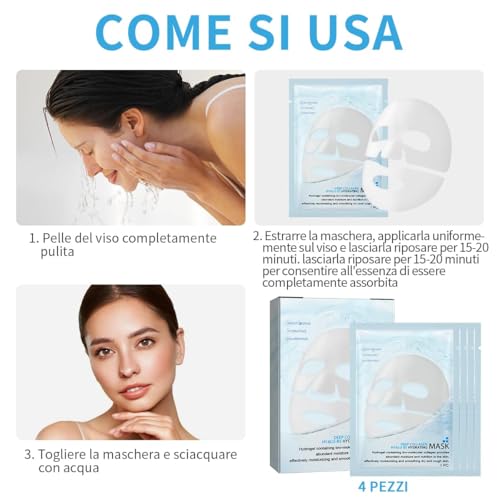 • ?Adatto a Tutti i Tipi di Pelle?La maschera collagene viso e completamente sicura per tutti i tipi di pelle.Fornendo cura per la pelle secca,sensibile,grassa e altri tipi di pelle.Usa regolarmente le maschere viso per la cura della pelle per risultati piu visibili!
