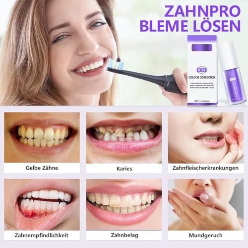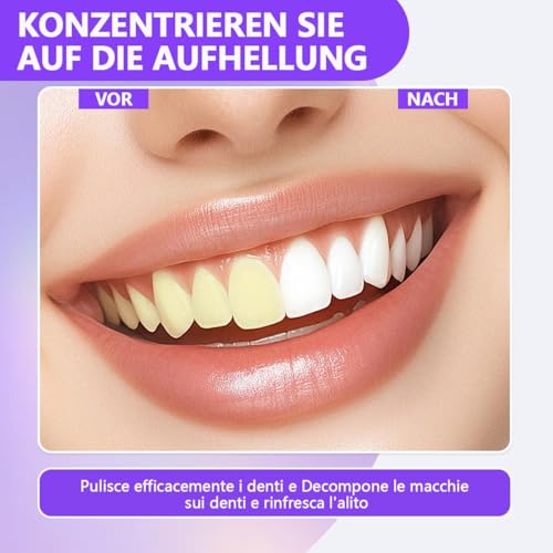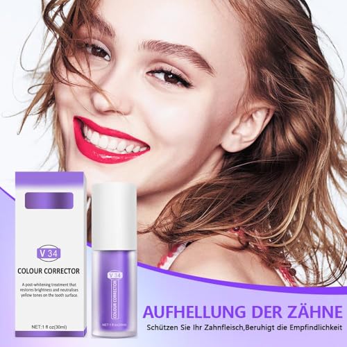 - ?Bitte Beachten Sie?Diese lila zahncreme weisse zahne hilft,die je nach person und alter mehr oder weniger weiss oder sogar leicht gelblich sind.Die tagliche ernahrung kann lebensmittelfarbe auf der oberflache der zahne hinterlassen,daher empfehlen wir,sie uber einen langeren zeitraum zu verwenden,um spurbare ergebnisse zu sehen.