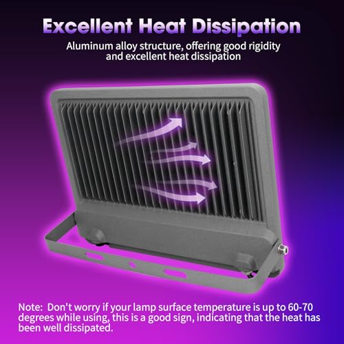 - All-Weather Resistant & Durable: These blacklights feature an IP65-rated ingress protection system. The robust, sealed construction ensures they can withstand heavy rain, snow and even accidental splashes. The high-quality materials used in its construction are resistant to high temperature, corrosion and impact, ensuring it remains in top condition in various climates. From the scorching heat of summer to the freezing cold of winter, the flood light’s durability ensures consistent performance, making it a long-term investment for all your lighting needs, whether indoors or outdoors.