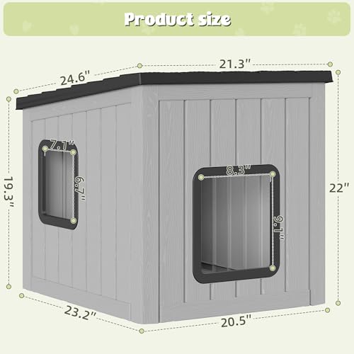 • Widely Applicable: This outdoor cat house size (23.2″D x 20.5″W x 22″H) is suitable for small pets such as puppies, cats, rabbits, chicks, or guinea pigs. This outdoor cat house weatherproof for cats feature a modern style design that will seamlessly blend into your home