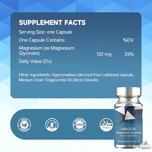 HBOOX Magnesium Glycinate Chelated Supplement, 60 Capsules,