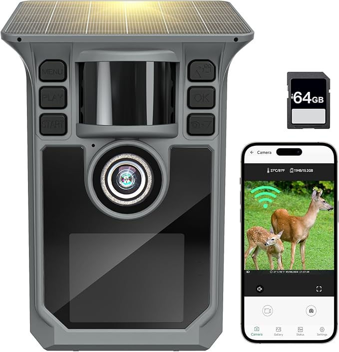 Solar Powered Trail Camera with 64GB Memory Card
