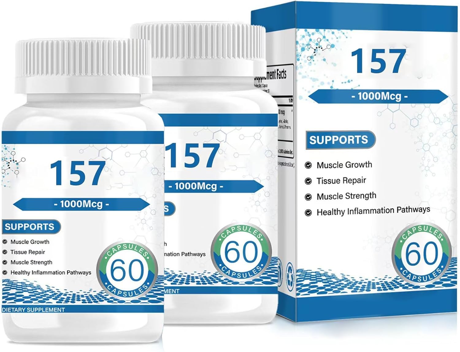 Muscle & Joint Support: 157 peptide capsules promote muscle recovery and joint flexibility for active individuals.