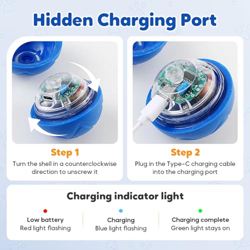 - Built-in LED for Night Play: The bright LED light ring makes the moving dog ball easy to spot in dark spaces or at night, extending the fun beyond daylight hours and offering visual stimulation to keep pets intrigued.