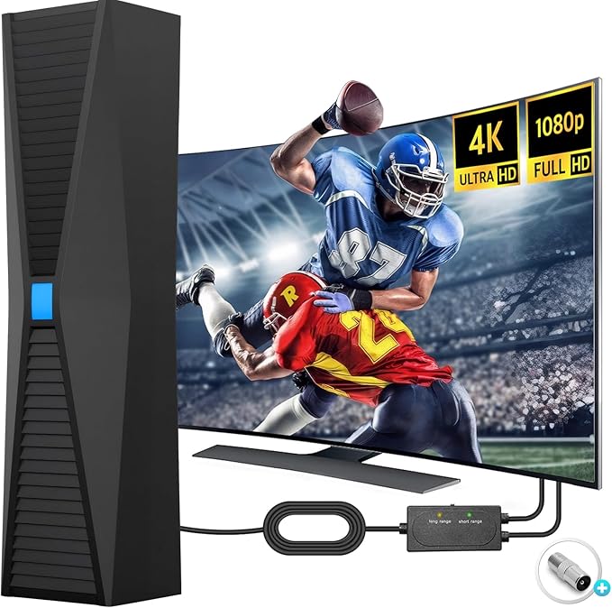 Equipped with an upgraded intelligent IC chip and built-in signal booster, this TV aerial can capture channels from over 560 miles away. Enjoy vivid visuals and clear sound for all your favorite programs without interference or fuzzy images.