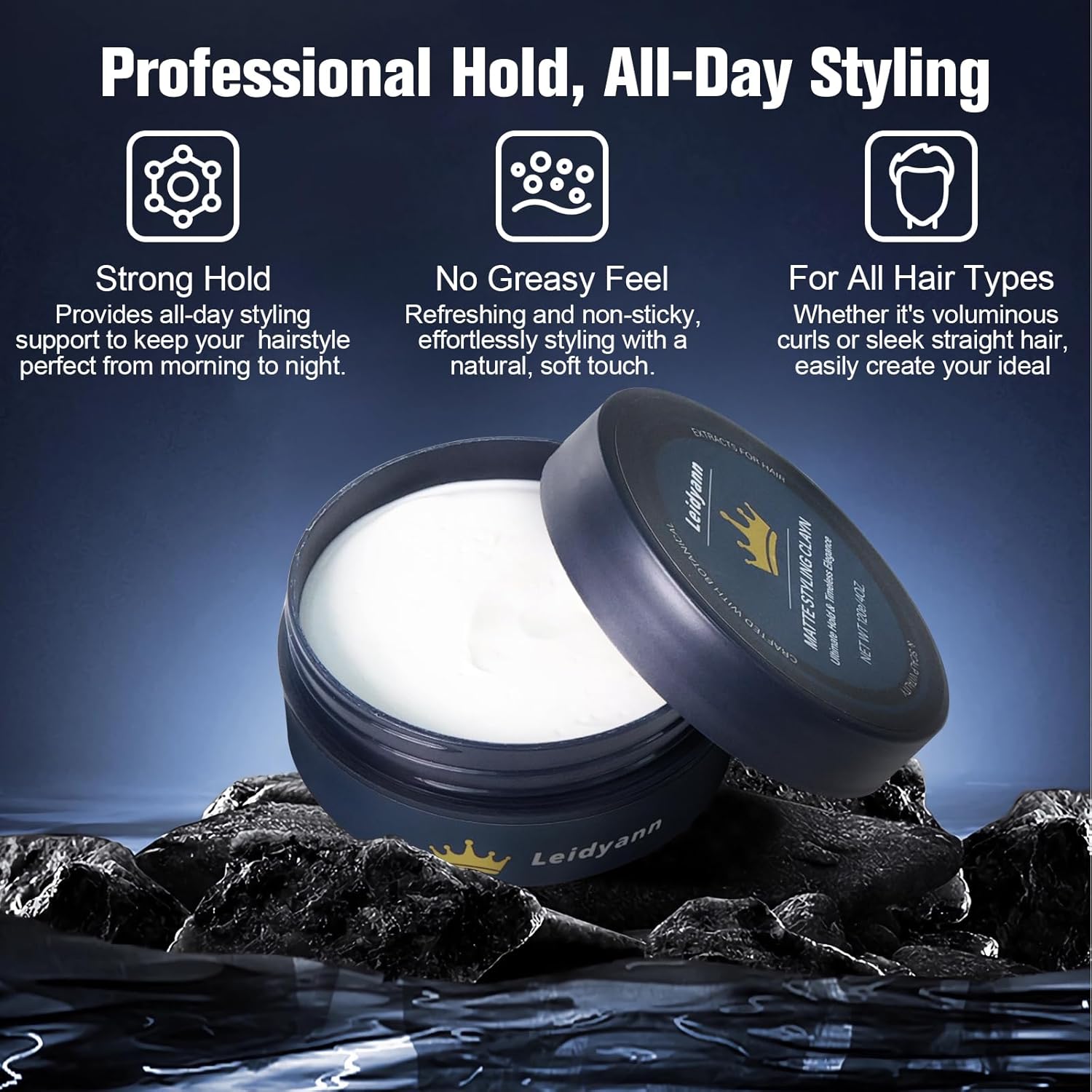 Crafted from carefully selected natural ingredients, this hair clay contains no harsh chemicals, making it safe and suitable for all hair types.