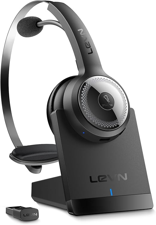 The LEVN wireless headset with mic uses advanced ENC technology to block ambient noise in open offices, cafés, or busy homes, ensuring your voice stays crisp and clear. Its smart noise algorithm automatically adjusts to your surroundings, while the one-touch mute button offers instant privacy and full control for professional, distraction-free conversations.