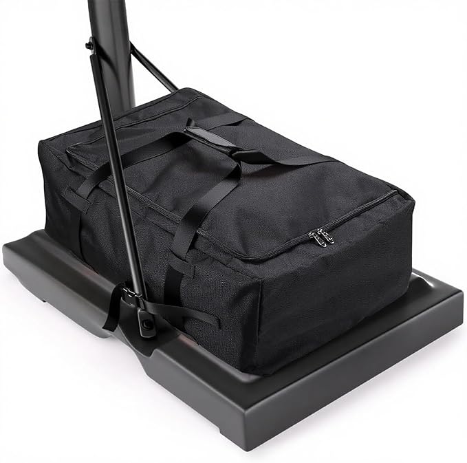 The heavy-duty base can be filled with water or sand for added balance. Four reinforced support rods form a sturdy triangular structure to eliminate wobbling during intense play.