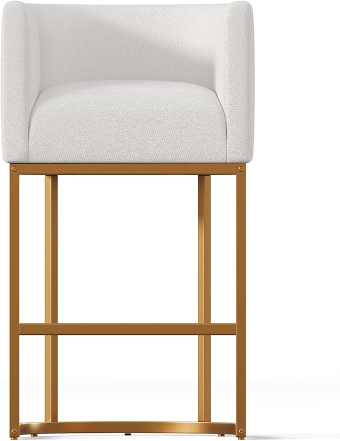 Counter stool features a bucket-shaped bathtub design with a rounded back that blends classic charm and modern style. Cushioned contours wrap the body, enhancing comfort.