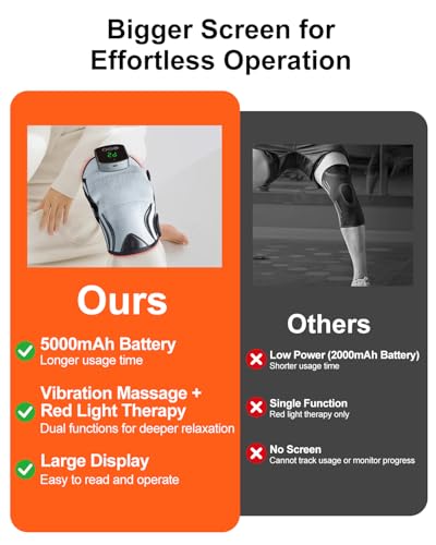 - ?Safe & Effective Pain Management Solution?Ditch the pills and experience a drug-free alternative for managing chronic knee pain. This red light therapy knee massager built with auto-shutoff safety features. It’s your reliable partner for dealing with pain from post-surgery recovery, sports injuries, and aging joints