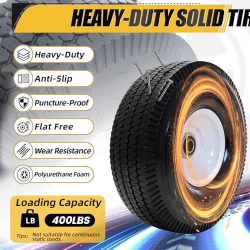 - ?Easy Installation?The 4.10/3.50-4 solid tire and wheel can directly replace existing tires, no additional tools or complicated installation steps are required. Simply slide the tires onto your equipment’s axles and secure them in place for reliable performance, greatly saving time and effort