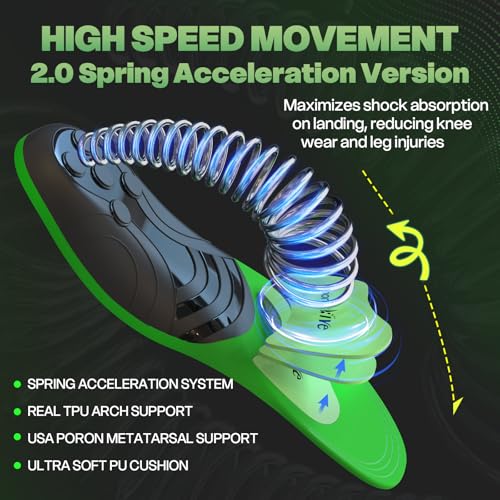 - 5-Spring Propulsion System: Feel instant energy return with every step–ideal for work boot insoles for men and women! 5 medical-grade steel springs absorb shock during heel strike and convert it into forward momentum, boosting running pace by 2 %-5 % in independent third-party tests