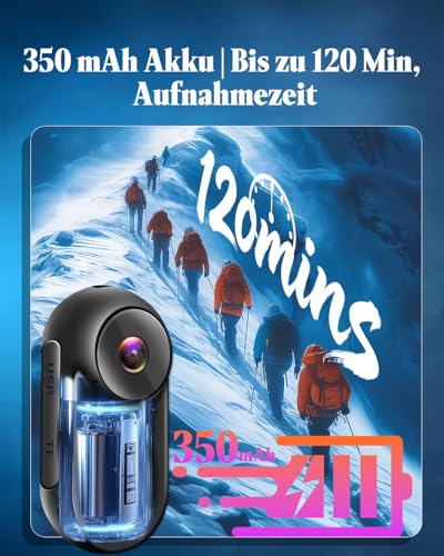- 1080P Super HD & 120? Weitwinkel-Actioncam:Verleihen Sie Ihren Abenteuern kristallklare Scharfe mit dieser Mini Action Cam! Sie nimmt in gestochen scharfem 1080P HD mit einem 120? Ultra-Weitwinkelobjektiv auf, sodass Sie jede Szene aus der beeindruckenden POV Kamera-Perspektive einfangen – perfekt fur Actionsport, Reisen oder als Body Cam.
