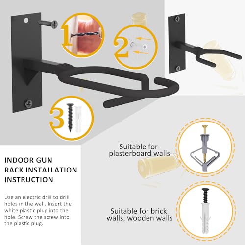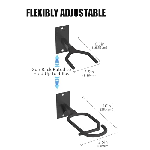 - MILITARY-GRADE DURABILITY: Constructed from heavy-duty steel, this gun rack for wall supports up to 40 lbs. It is wrapped in a protective rubber coating that guards against scratches, slipping and rust