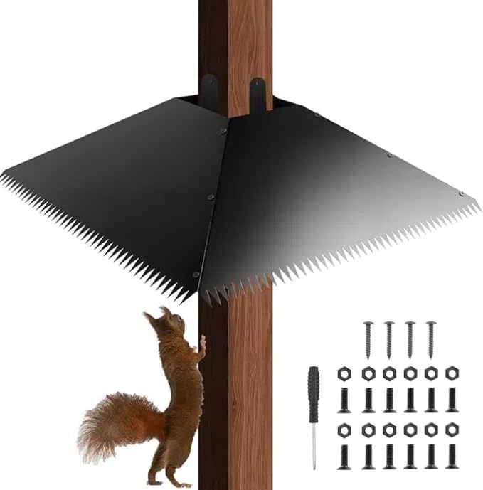 Fits 2–3 inch poles or shepherd’s hooks. Just wrap around the pole, secure with the provided screws, and place at least 8 feet above ground for maximum protection against squirrels.