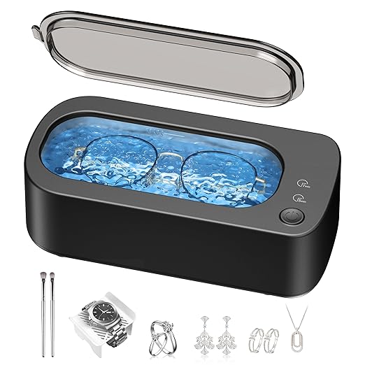 Enjoy sparkling results at home with this one-touch ultrasonic jewelry cleaner—perfect for jewelry, eyeglasses, rings, dentures, and more. No need for professional cleaning; maintain your valuables easily and safely.