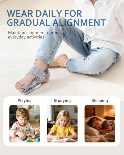 • ?-Adjustable Fit for Lasting Correction?Designed to fit children’s feet from 9.45 to 13.4 inches, this bunion fix uses dual Velcro adjustments for a secure, personalized fit. It adapts to different foot shapes and ensures the corrector stays in place during rest or light activity, providing consistent alignment and bunion relief over time.
