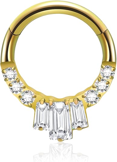Designed with a smooth clicker hinge for effortless, no-pinch insertion and removal. Perfectly suited for septum, daith, rook, helix, tragus, and nostril piercings.