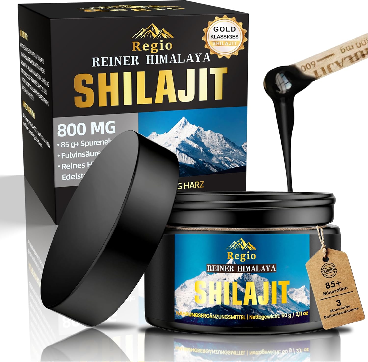 Unser Shilajit stammt aus unberührten Höhenlagen des Himalaya zwischen 16.000 und 18.000 Fuß. Das seltene „Grade A“-Harz wird natürlich gereinigt, laborgeprüft und frei von Zusätzen gewonnen. Mit über 85 Spurenelementen sowie Fulvo- und Huminsäuren garantiert es maximale Bioverfügbarkeit und natürliche Vitalität für Körper und Geist.