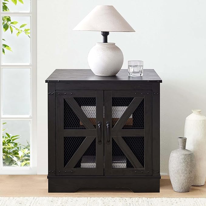 Charming Farmhouse Design: Add a touch of rustic warmth with this farmhouse nightstand, featuring a distressed wood finish and classic sliding barn door accents that bring authentic country charm to any bedroom or living room.