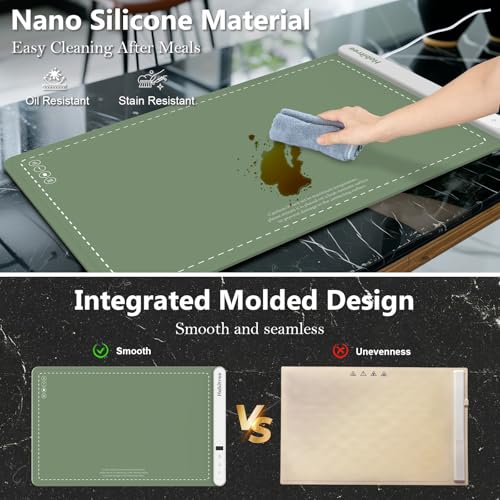 - PREMIUM MATERIAL & EASY CLEANING Thickened warming mat for food is made of premium Nano silicone material for better thermal conductivity. The integrated design of food warmer mat is oil and stain-resistant, ensuring easy cleanup and longevity