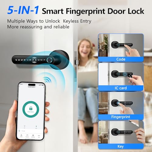 • ?5 Ways to Unlock for the Whole Family?This biometric door knob offers maximum convenience.You can: Use the Tuya smart App, enroll a unique fingerprint to each member (up to 100 prints), set a password for guests (up to 100 codes), IC cards for kids & seniors, and keeaoor knob crafted from high-quality, anti-scratch metal for ultimate durability, but its sleek, modern design also complements any home decor. This fingerprint lock offers a robust physical barrier for complete peace of mind