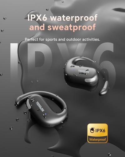 - ? IPX6 Waterproof & 24/7 Support: Rain or sweat won’t stop your rhythm with these open air earbuds. The IPX6 rating protects against heavy sweat and sudden downpours. Plus, every purchase of these out of ear earbuds includes 1-year warranty + lifetime support. TEDELON serves over 50 million users worldwide–we’re here for you 24/7.