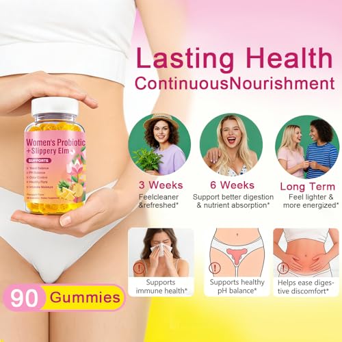 - ?Vaginal Health and pH Balance?: Our unique combination of probiotics and prebiotics works synergistically to support your immunity and intimate comfort. 2-in-1 gummies mix probiotics with slippery elm. It can maintain the optimal vaginal pH level, promote female hygiene, and prevent imbalance. Our natural probiotics help maintain a healthy microbiota, promote overall intimate health, and give you confidence every day.