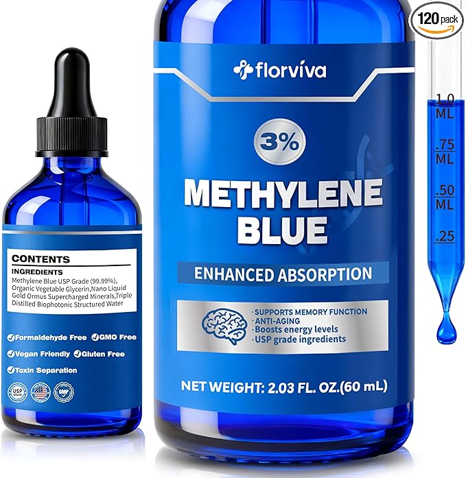 High Purity, USP Pharmaceutical Grade – Each batch contains 99.9% USP methylene blue, organic glycerin, and structured Biophotonic Water. Third-party tested for purity and free from formaldehyde, GMOs, gluten, alcohol, and fillers.