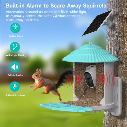• ?Multiple Mounting Options & Gift-Ready Design? Supports tree mount, wall mount, pole mount, or hanging installation to fit different outdoor spaces. Built-in alarm helps deter squirrels and pests. Includes a 32GB memory card for local storage and works with 2.4GHz Wi-Fi only–a thoughtful gift for bird lovers and families.