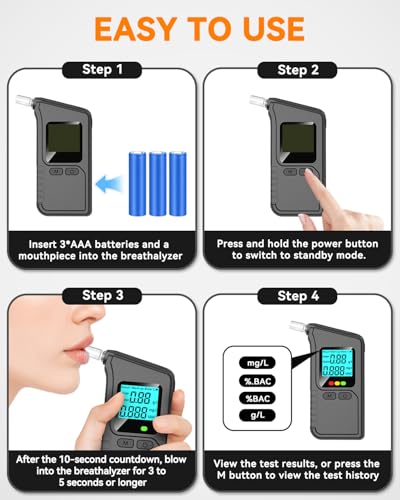 - ?Einfach & Energieeffizient?Professionelle alkoholtester mit nur 3 AAA-batterien betrieben (nicht im lieferumfang). Einfach einschalten, 15 sekunden vorheizen lassen und gleichmassig blasen. Das blau hinterleuchtete display zeigt das ergebnis sofort an. Automatische abschaltung nach 20 sekunden spart energie. Mit alkoholtester batterieanzeige fur rechtzeitigen wechsel.