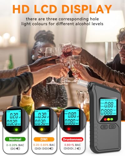 - ?Sofortige Messung mit Sprachfeedback?Unser alkoholtester fur zuhause liefert innerhalb von 3 sekunden ein klares ergebnis nach nur 4-5 sekunden blaszeit. Das farbige LCD-display zeigt visuell den status (grun/niedrig, gelb/grenzwertig, rot/uber Grenze), unterstutzt durch eine deutliche sprachansage – fur sofortige klarheit ohne wartezeit.