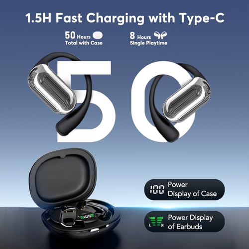 - ?50Hrs Long Battery ,Smart Touch Controls: Power through your day with translation headsets engineered for long endurance. Enjoy up to 8hrs of nonstop use per charge, and extend to 50hrs total via the ultra-fast magnetic charging case.The bluetooth headphones feature intuitive touch controls–manage music and calls effortlessly with a tap. Equipped with a built-in LED display and advanced mic system, they ensure precise voice capture while minimizing background noise for an optimal experience.