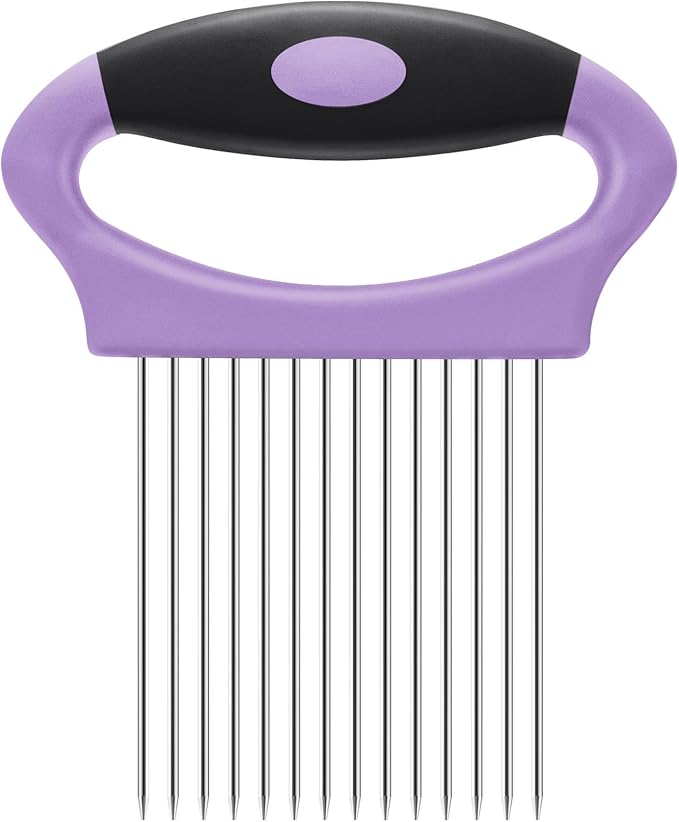 The secure grip mechanism keeps your hands protected from sharp prongs, ensuring safe and efficient slicing. Ideal for both beginners and experienced chefs looking to speed up prep while keeping safety first.