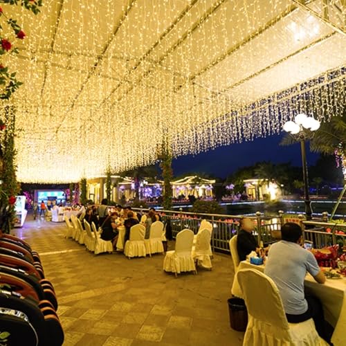 - ?Easy To Install And Widely Applicable?: The icicle string lights can be used indoor and outdoor, optimal for bedroom, living room, roof, garden, deck, porch, balcony, pathway, pavilion, pergola, garden, terrace, fence, bistro, pub, hotel, shopping mall, extremely nice for Chrismas, New Year, Halloween, birthday party, wedding and anniversary.